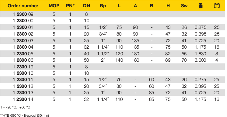 | 1 2300 09 | Ball Valve for gas 2300 DN 8 |