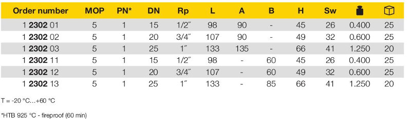 | M 1230 21 | Ball valves for gas 2302 DN 25 |