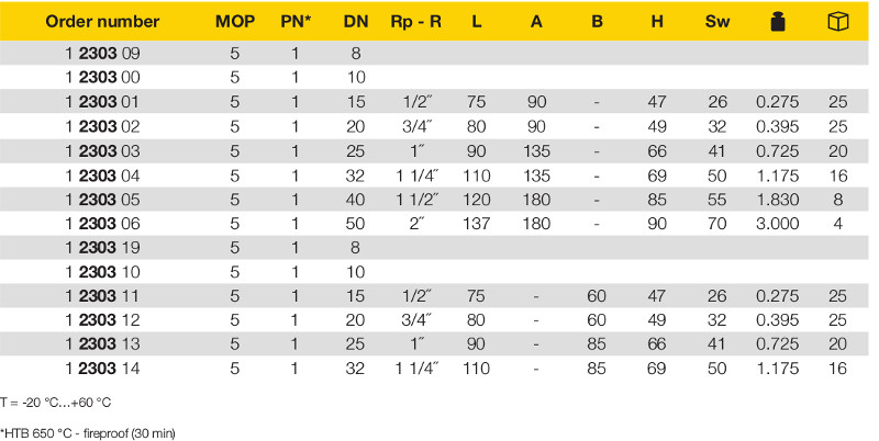 | 1 2303 01 | Ball Valve for gas 2303 DN 15 |