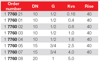 | M 1776 00 | Thermostatic Valve DN 10 - kv=0.4 |