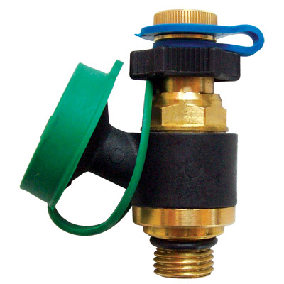 Test Points with draining function Brass version, green cap, with swivel hose connection.