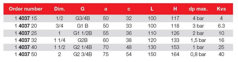 Max. operating pressure: 16 bar / 130 °C DN15 - DN32