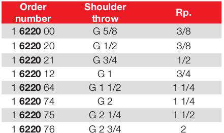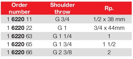 | M 1622 01 | Threaded Connection Elements with cone flat seal iron pipe connection 1/2 x 38 mm Rp |