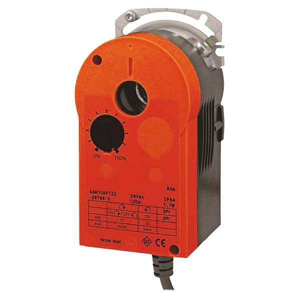 1 7712 27 - Supply voltage 24 V AC/DC. Control: 2-point, 3-point or continuous. Operating range continuous 0-10 V, disengageable gearbox for positioning of the mixing valve and for manual adjustment, synchronous motor with control and shutoff electronics. Torque 10 Nm, operating time 35/60/120 s. Characteristic graph type configurable on the drive, protection class IP 54.