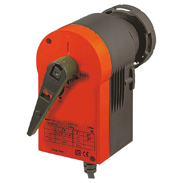 1 7712 33 - Supply voltage 230 V AC, Control: 2-point or 3-point, disengageable gearbox for positioning of the ball valve and for manual adjustment, synchronous motor with control and shutoff electronics. Torque 8 Nm; operating time 120 s; protection class IP 54.