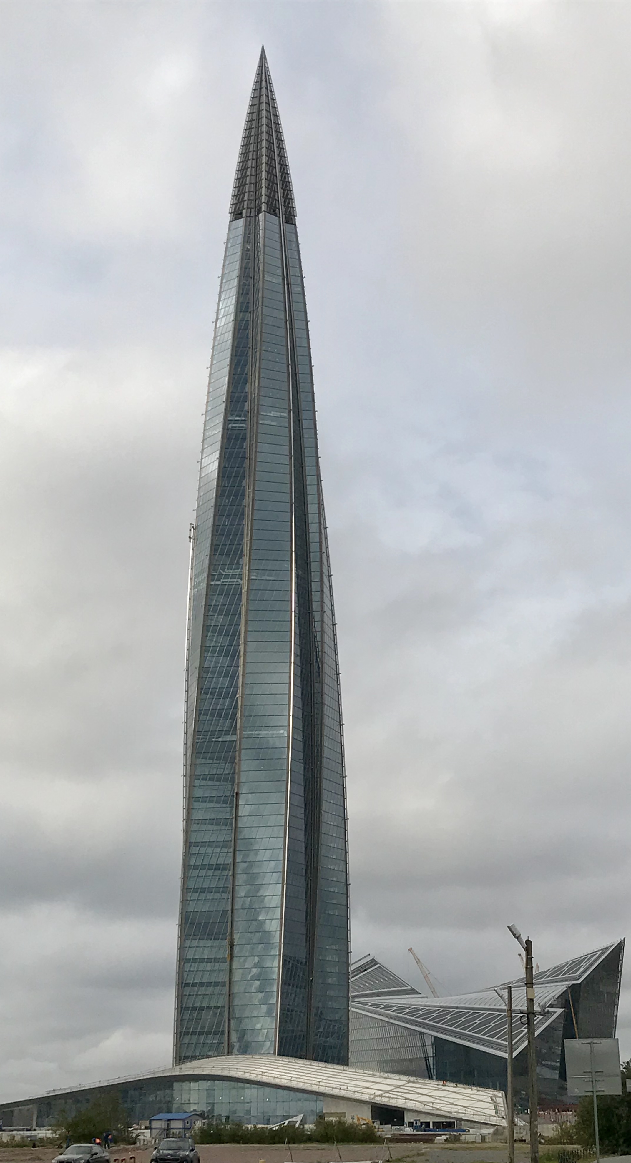 The tower of the Lakhta Center (Gazprom headquarter in St. Petersburg) is the tallest building in Europe (462 m). The project was completed in 2019.